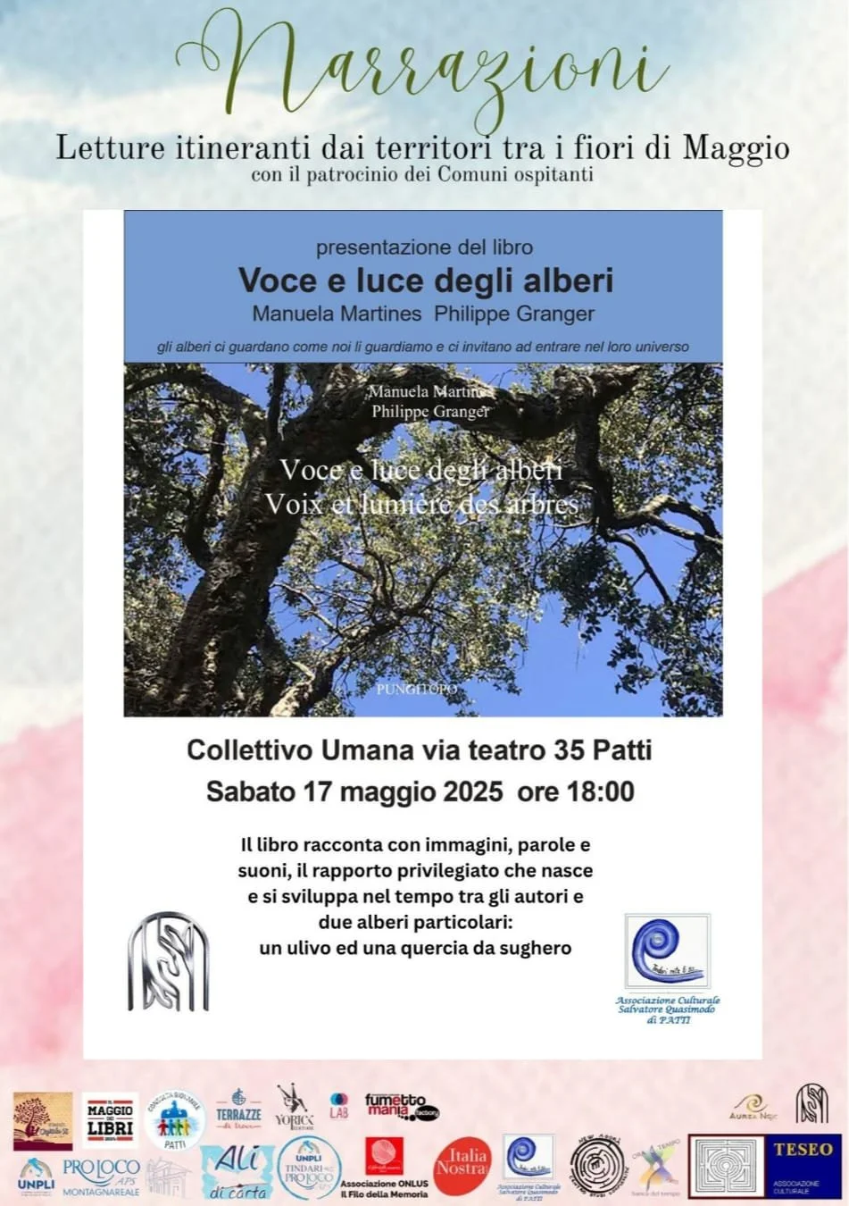 Sabato 17 maggio alle ore 18.00 nel Centro Culturale Umana - Raphaël Dufresne di via Teatro 35 a Patti si svolgerà l'incontro “Voce e luce degli alberi”.