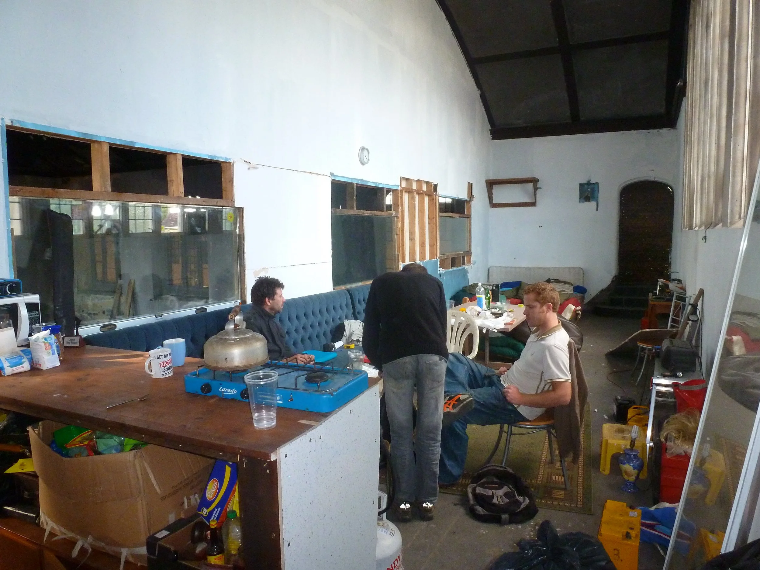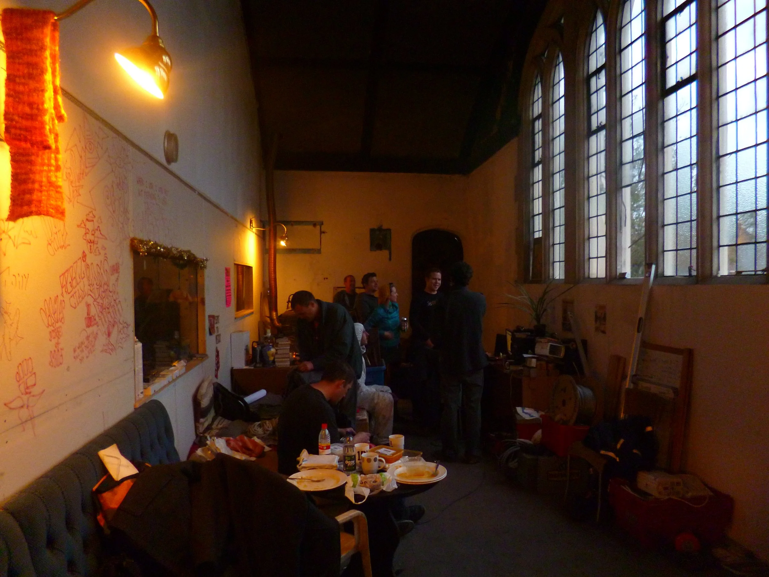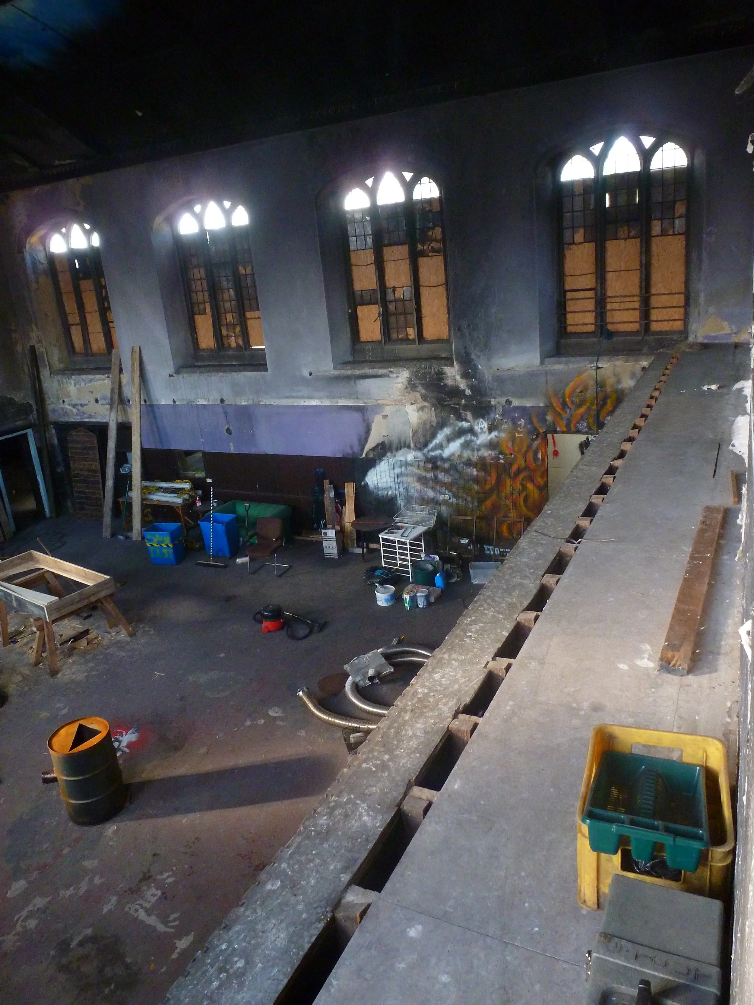 With this vision in view, Rapha got involved in the All Hallows Hall Project whose aim was to regenerate a derelict church to promote community participation in the built environment. The project began as a squat where individuals from all walks of life gathered including builders, electricians, carpenters, artists as well as homeless people. This inclusive group thus began renovating the space mainly using reclaimed construction materials such as old scaffold planks.